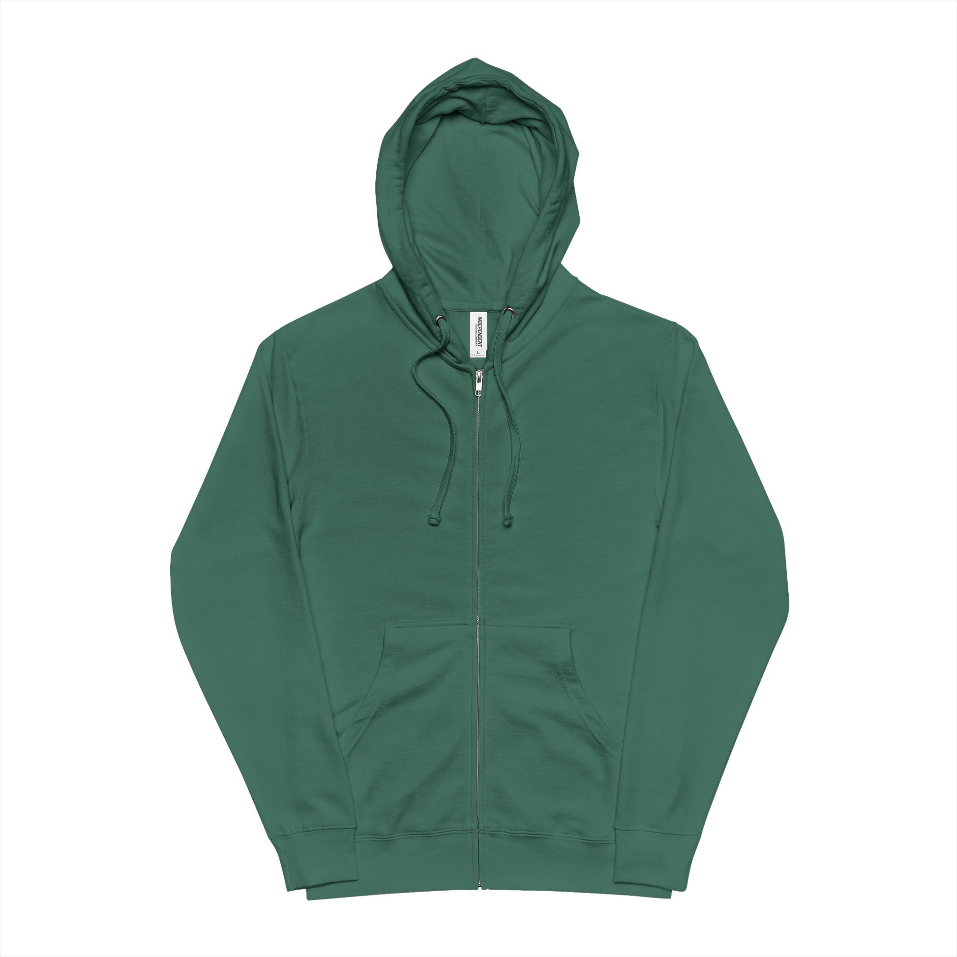 This zip-up fleece hoodie brings warm comfort and clean style together. The soft 80/20 fleece, jersey-lined hood, and sturdy rib details keep it cozy and in shape all day. A metal zipper and reinforced seams add durability, while the layered back graphic delivers an artful, bold hit without shouting. Perfect for late-night walks, studio days, or easy layering on cooler mornings.